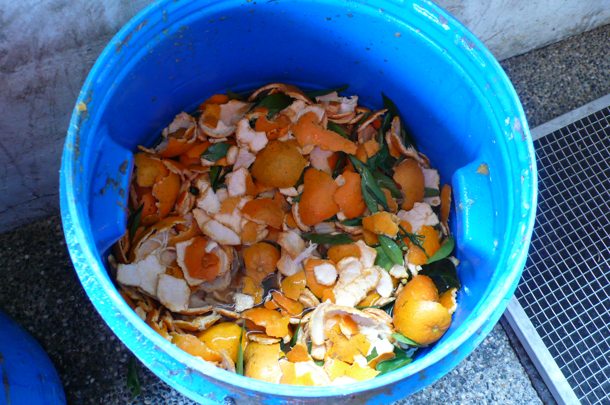 3.回收果皮請環保志工做成酵素清潔液,可取代清潔劑用於清洗廁所和鍋碗瓢盆,安全衛生又環保。